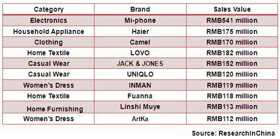 Top 10 Brands in Tmall ¡°11.11¡± Shopping Festival (by sales value), 2013-12-13