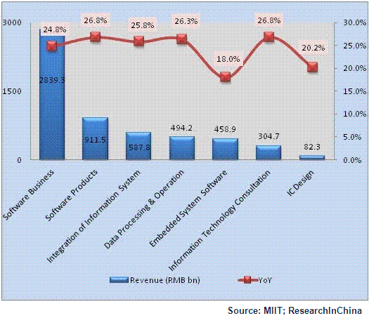 Revenue and YoY of China¡¯s Software & Information Technology Industry, Jan.-Nov., 2013