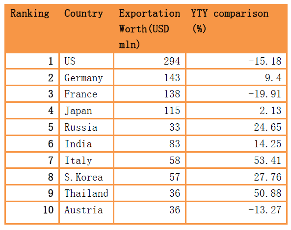 The Heparin Sodium and Peptone derivatives products accounted for nearly half of China¡¯s bio-med exportation. Most of the countries been exported to are advanced countries. And Asia, Europe and U.S. consumed almost 69% of the China¡¯s exportation.