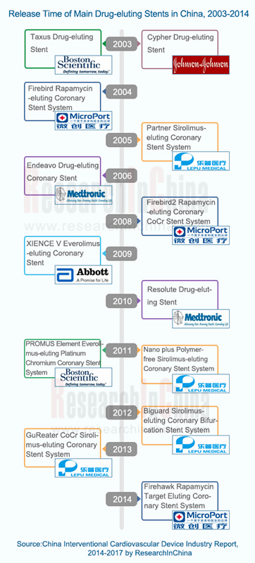 Release Time of Main Drug-Eluting Stents in China, 2003-2014