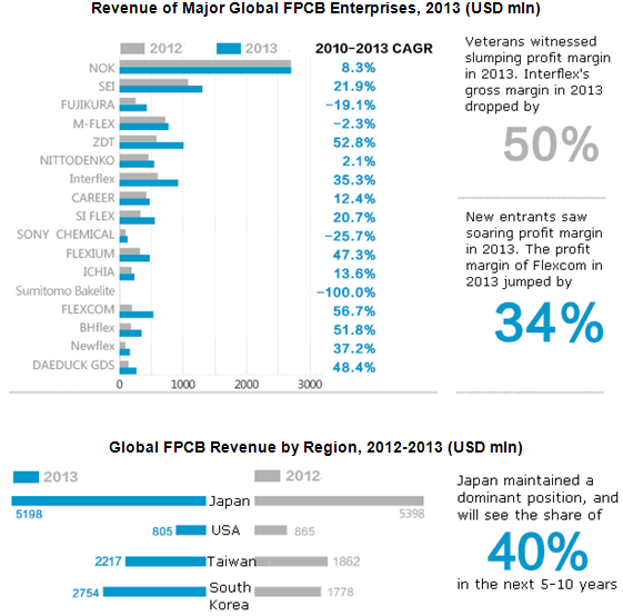 Revenue of Major Global FPCB Enterprises, 2013 (USD mln)
