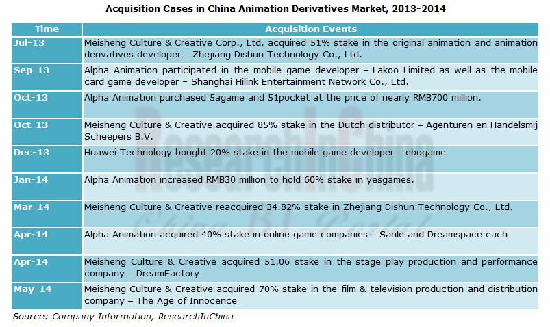 Acquisition Cases in China Animation Derivatives Market, 2013-2014